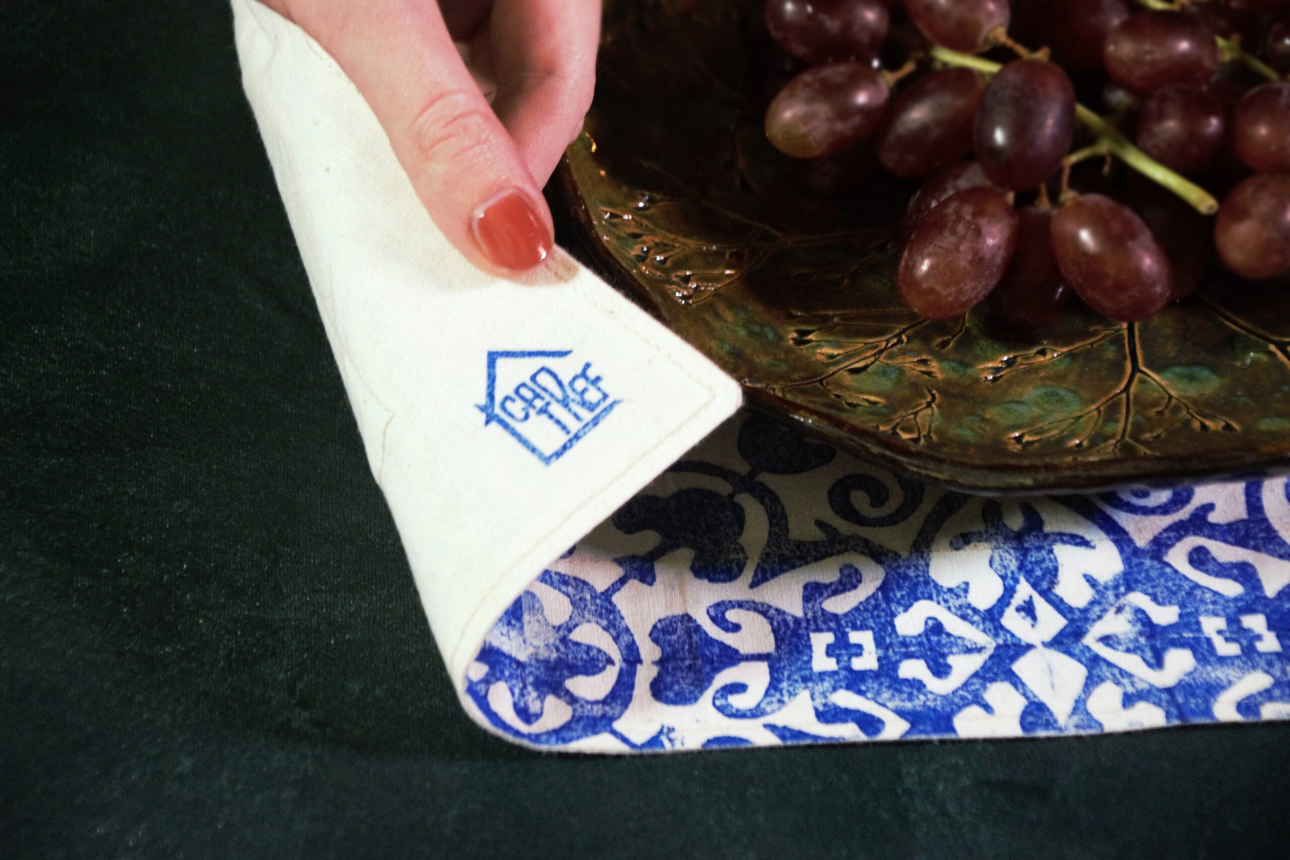 A set of these blue placemats with a self created pattern will brighten up your time at the dinner table. You order them by piece to get the fitting amount for your family and guests.