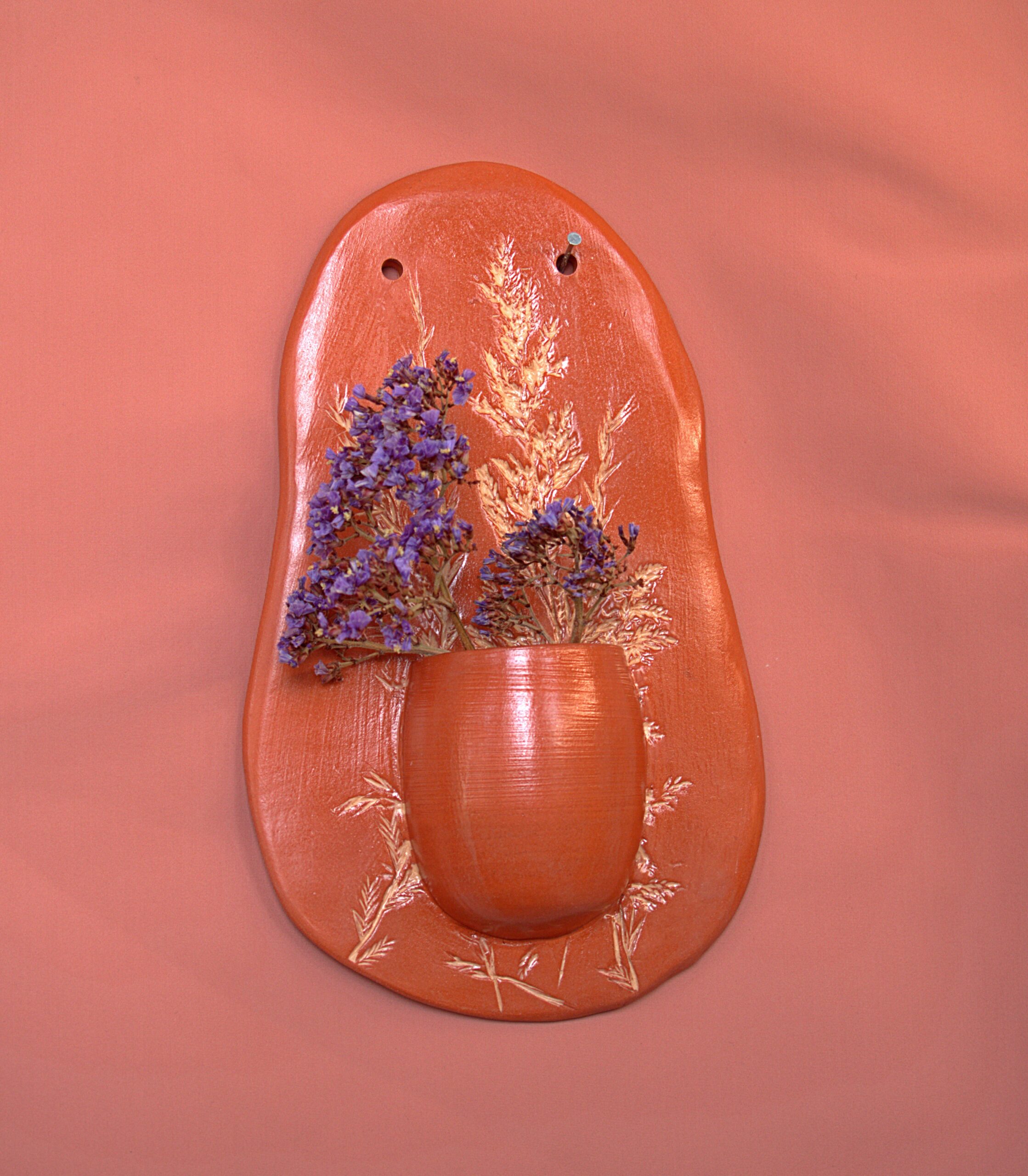 Enhance your living space with our unique handmade ceramic hanging wall piece, a perfect fusion of artistry and nature. Each piece is uniquely crafted with imprints of wildflowers and plants, meticulously painted to highlight their natural beauty. Adding to its charm, this wall piece features a small attached pot, perfect for planting or displaying plant cuttings, making it both a decorative and functional addition to your home.