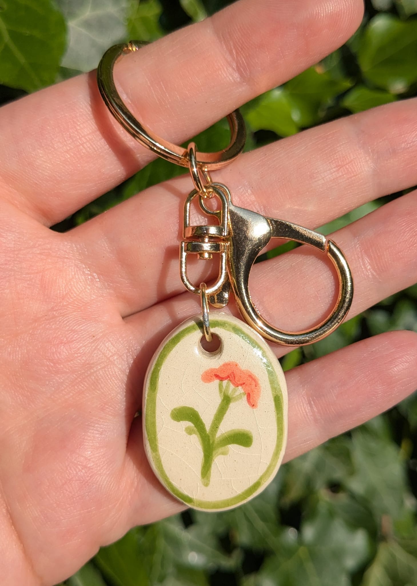 Unlock a little beauty in the everyday with a Key to the Garden keychain. Each piece features a delicately hand-painted ceramic charm adorned with floral motifs, inspired by quiet gardens and wild blooms. Attached to a durable stainless steel keyring and clip. It is p erfect for keeping keys close or adding a touch of charm to your bag or belt.