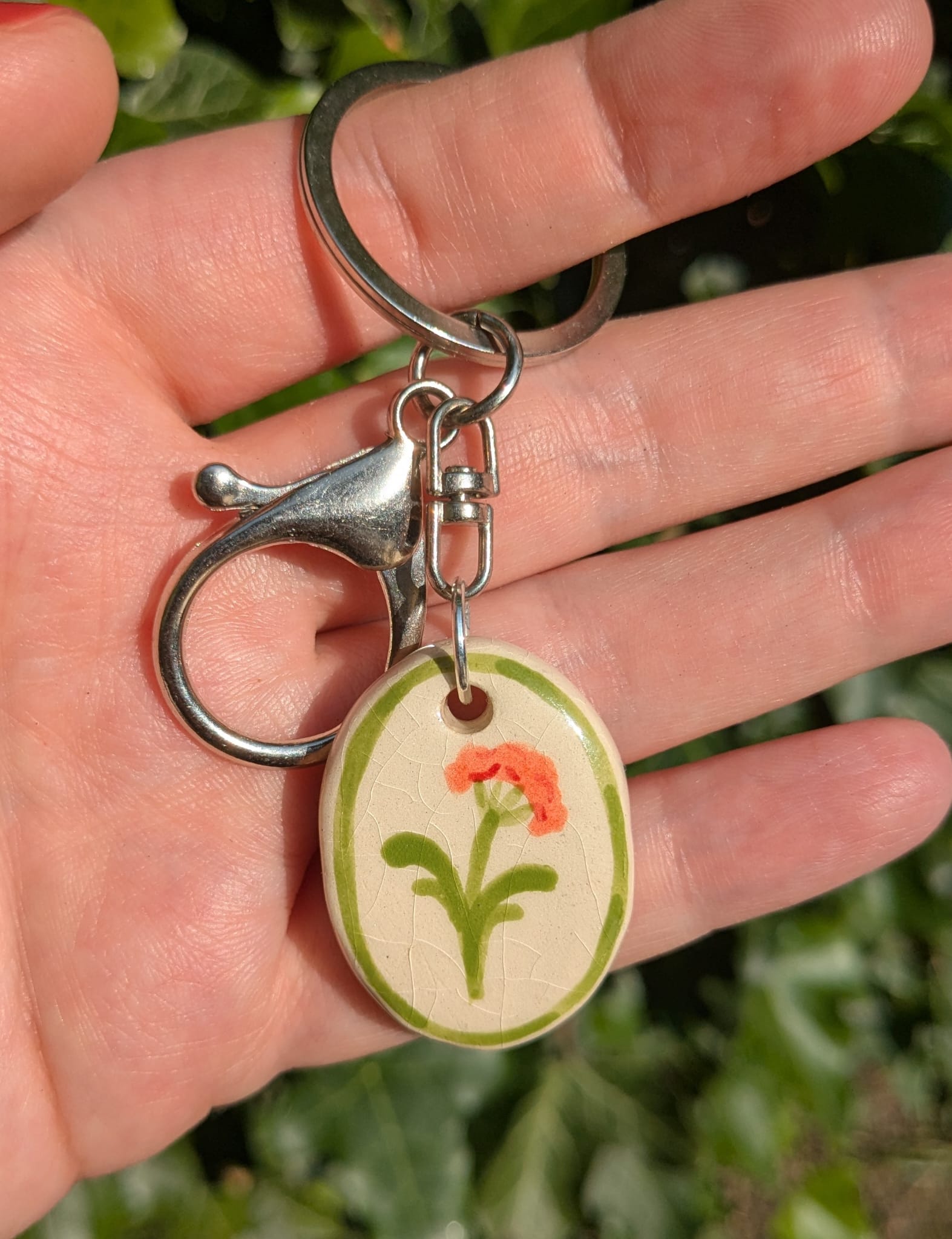 Key to the Garden – Ceramic Keychain (Marigold, silver)